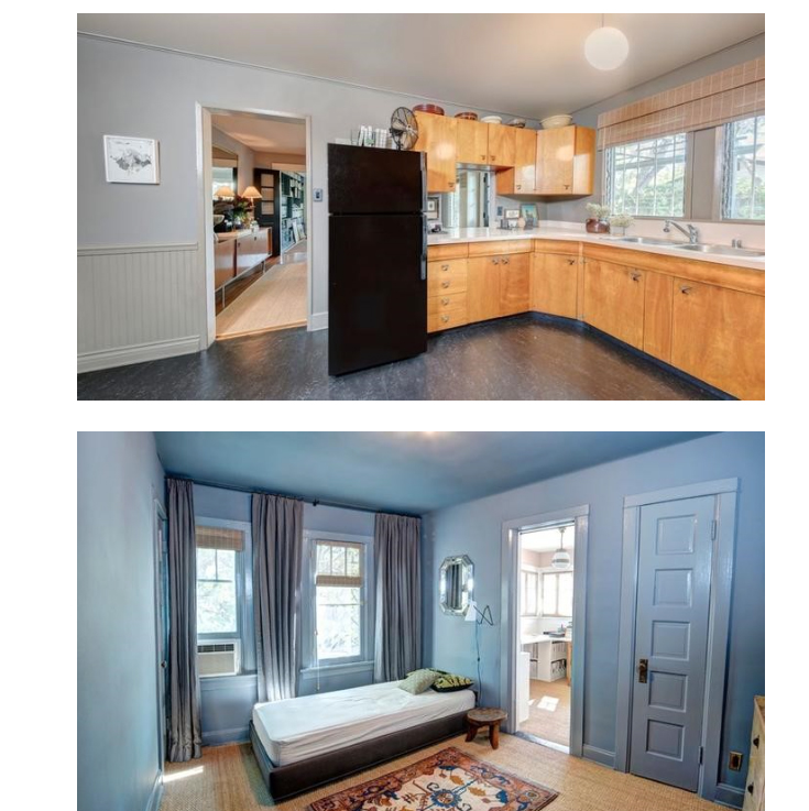 The property is divided into two townhouses. Each of them comes with two bedrooms, one bathroom and hardwood floors, and a top-notch interior to match the 1922 Southern Colonial-style facade. Other amenities include office space, a two-car garage with a separate carriage house above, office space and a studio.