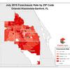 New data from CoreLogic shows the rate of Orlando-Kissimmee-Sanford area foreclosures among outstanding mortgage loans was 2.44 percent in July — down 2.14 percentage points compared to this time last year when the rate was 4.58 percent.