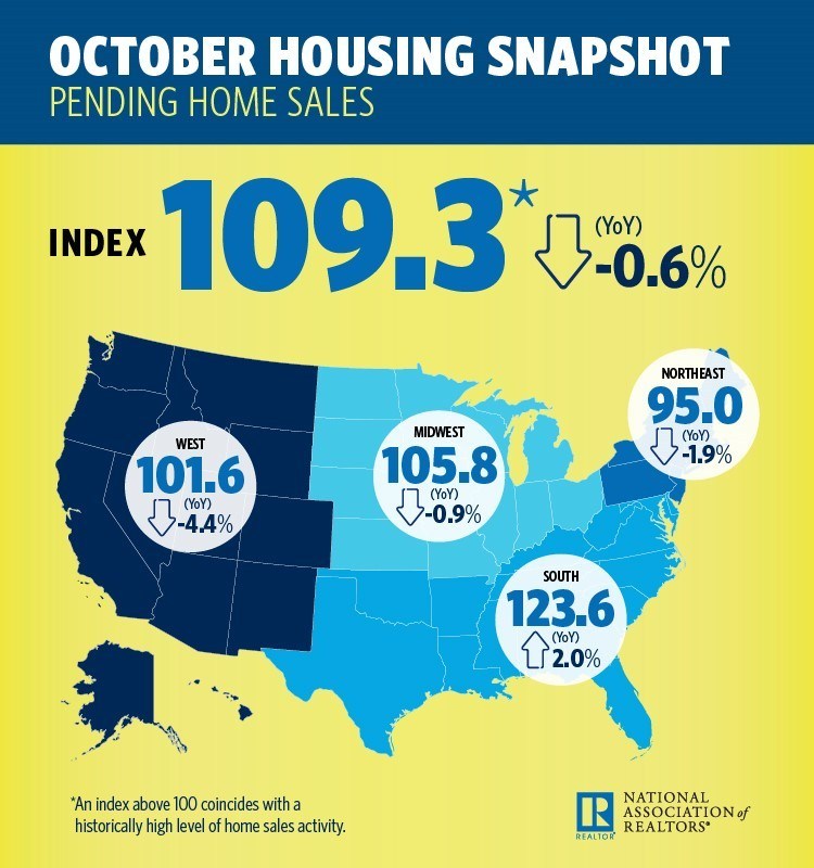 Pending home sales picked up steam in October, up 3.5 percent in the National Association of REALTORS® (NAR) Pending Home Sales Index (PHSI). The PHSI posted 109.3 in October, up from 105.6 in September; however, sales were 0.6 percent lower year-over-year. The Index is based on contract signings.