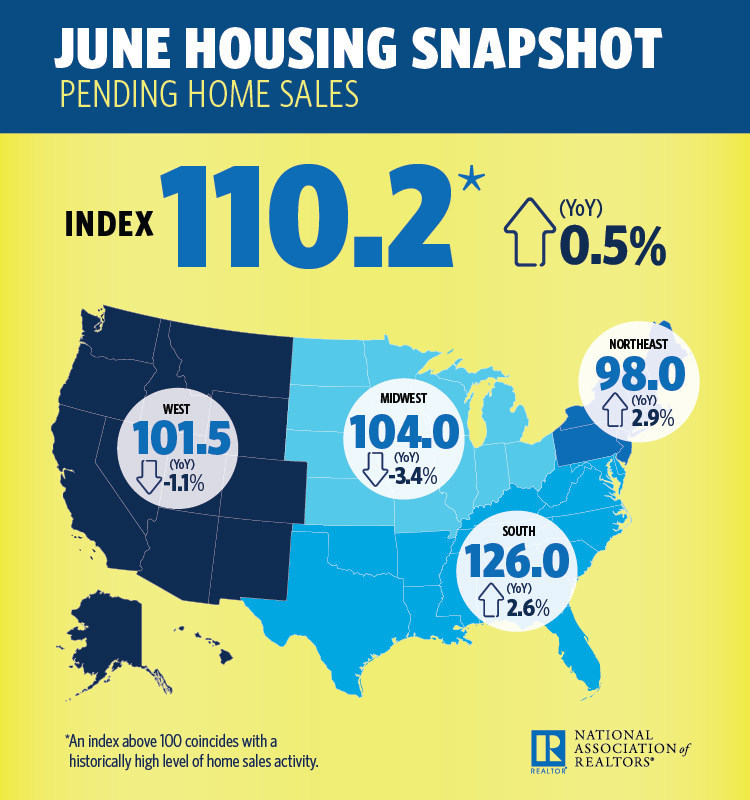 Pending home sales returned to form in June after three straight months of backward traction, up 1.5 percent in the National Association of REALTORS® (NAR) Pending Home Sales Index (PHSI). The PHSI posted 110.2 in June, up from 108.6 in May. The Index is based on contract signings.