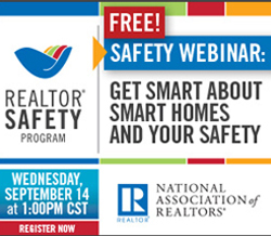 NAR PULSE—Want to share the message of safety with your agents this month? Then register for the free Sept. 14 REALTOR® Safety Webinar – “Get Smart about Smart Homes and Your Safety.” Find out what REALTORS® need to know about smart home technology to best inform clients and protect them while on the job. Click here to register now.