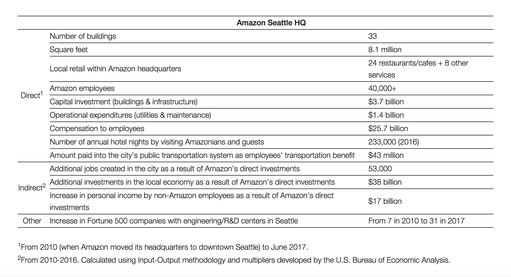 Last month, Amazon launched a national sweepstakes tied to an announcement that it would be investing in a second headquarters (HQ2) in North America. The competition will be fierce, if the Seattle base is any indication of HQ2’s potential success. The winning city will be welcoming billions of dollars in direct investments to the local economy, billions to public transport and tens of thousands of jobs. Here’s a breakdown of Seattle’s success thus far: