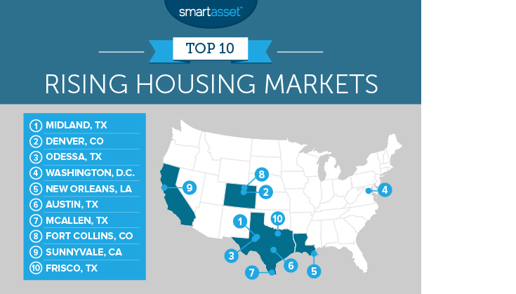 Looking to purchase a new spot, buy an investment property, or pick up and move? SmartAsset recently published data on the top rising housing markets. In order to evaluate up-and-coming housing markets, SmartAsset looked at data on 308 cities with a population over 100,000, scrutinizing the change in median home values, median incomes, and the difference between population change and housing unit changes.